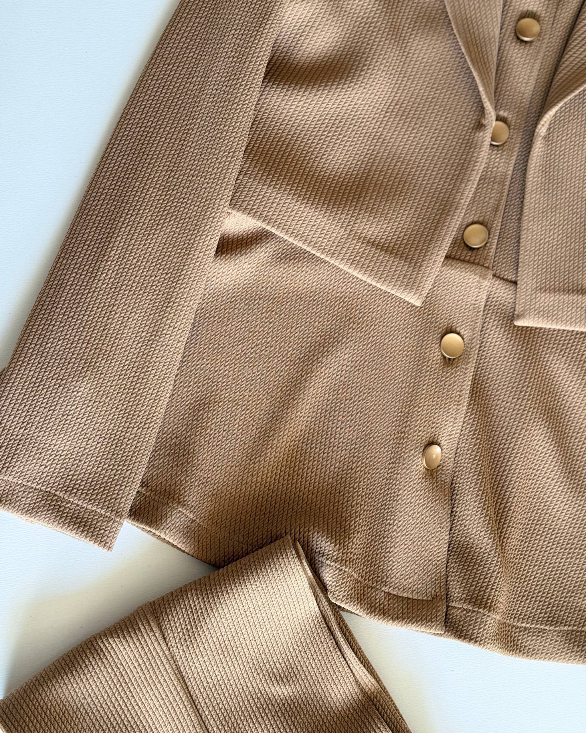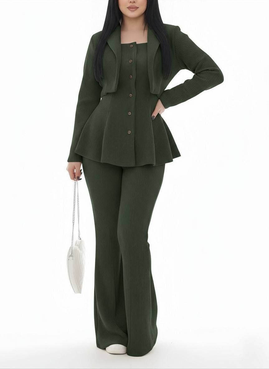 ست ست تکه شامل کت کوتاه ، شلوار و جلیغه ی دکمه دار زنانه