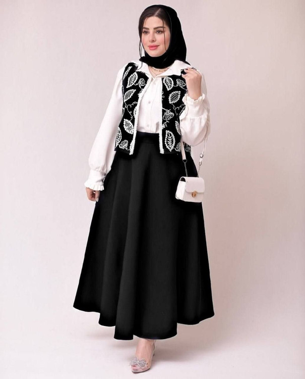 ست سه تکه شامل شومیز، دامن و جلیقه زنانه