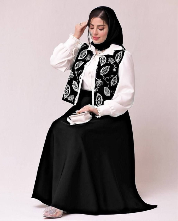 جنس جلیقه: کرپ صوفیا سوزن دوزی شده