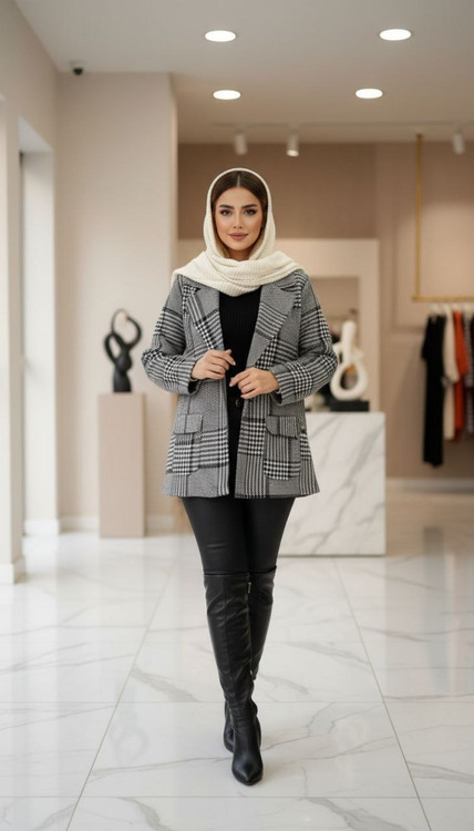 کت چهارخونه پشمی زنانه مدل شیما