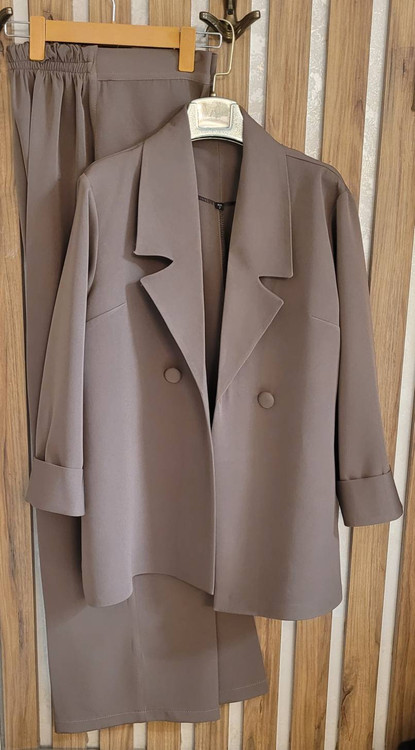 🔸جلوی کت لایی کارشده جهت ایستایی بهتر و شیک تر، مدل شلوار نیم بگ و پشت شلوار کش کار شده، جلوی شلوار پیلی خورده