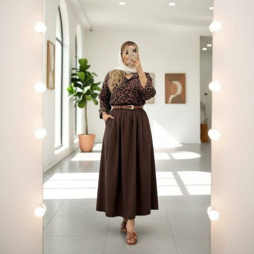ست شومیز دامن پلنگی زنانه همراه کمربند